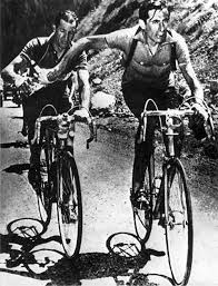 Non sono un appassionato di ciclismo. Un tempo però ero ammirato dalla strenua resistenza alla fatica di questi atleti ed ascoltavo con una certa fascinazione mio padre che mi raccontava del duello mitico tra Bartali e Coppi, la rivalità tra i due e gli italiani che si dividevano, come se i due fossero Ettore ( Gino) e Achille (Fausto) . Così come rimanevo basito ed incredulo al racconto che nel 1948 la vittoria di Bartali al Tour avesse contribuito a distrarre con un momento di gioia collettiva la nazione dopo il tentato assassinio di Palmiro Togliatti.